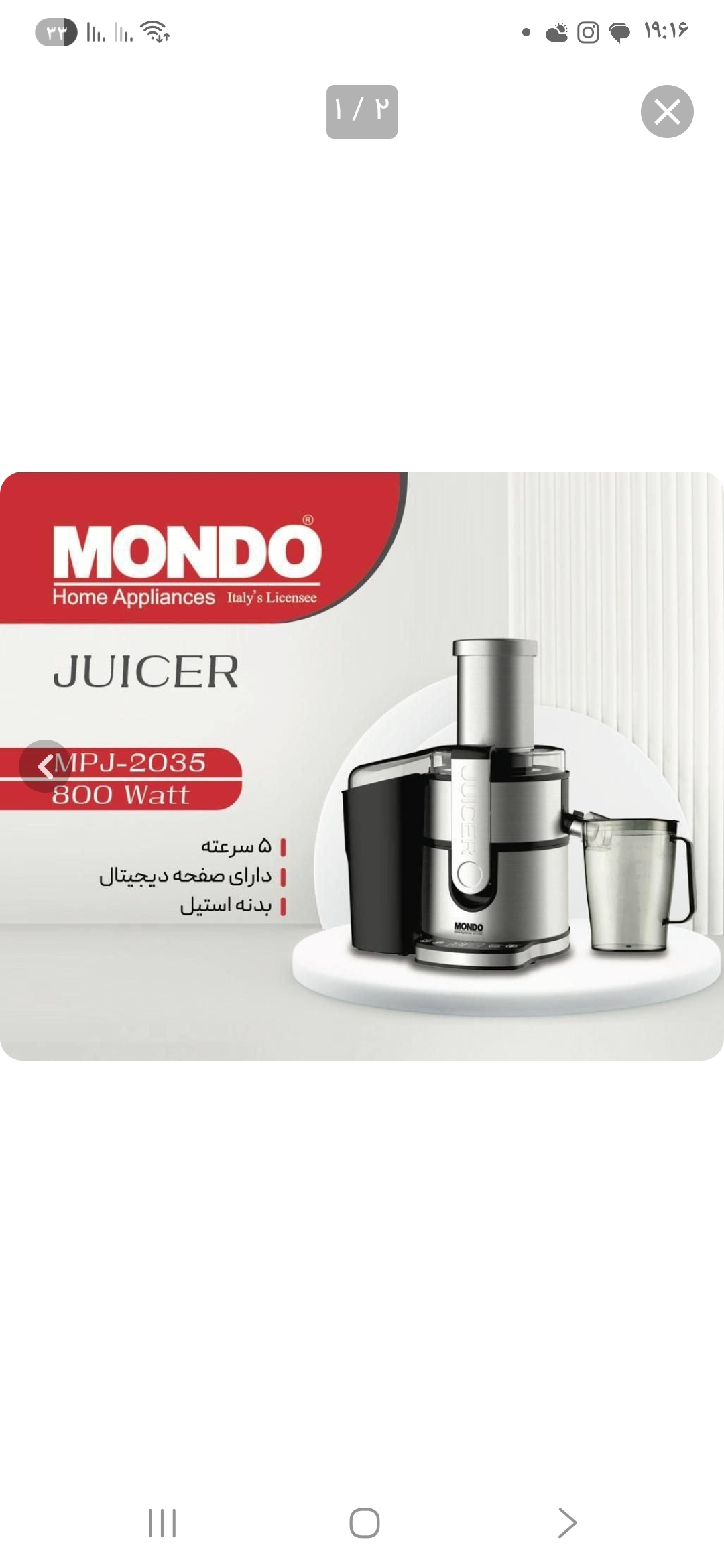 تحت لیسانس ایتالیا ۸۰۰ وات ۵ سرعته ظرف تفاله ۲ لیتری ۶۰ ماه گارانتی صفحه لمسی استیل ضد زنگ عملکرد ضد چکه بازوی قفل ایمنی